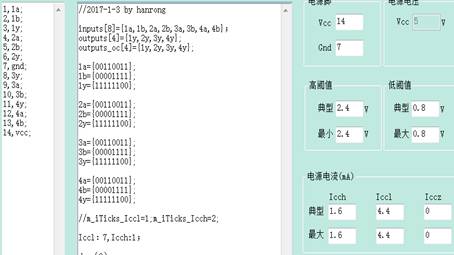 Iccl:7,Icch:1: 在第一拍測試輸出低時的電源電流;第7拍測輸出高時的電源電流。0拍表示不測試電源電流。