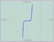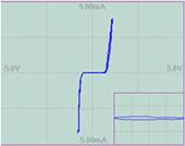 上面的結(jié)點(diǎn)中,包含兩個(gè)PN結(jié)。在PN結(jié)正負(fù)向?qū)ㄖ螅瑢?dǎo)通電阻很小,完全“淹沒”了15K電阻——電阻是否存在基本不影響曲線形狀;這個(gè)電阻只能在0電壓點(diǎn)附近(兩拐點(diǎn)之間,PN結(jié)電阻遠(yuǎn)大于15K)呈現(xiàn)出來。仔細(xì)觀察,可發(fā)現(xiàn)零點(diǎn)附近曲線略有不同。但由于這段曲線所占比例很小,可用于顯示的點(diǎn)數(shù)更是有限,最終如上圖所示,兩條曲線整體形狀相差不多——故障被掩蓋。